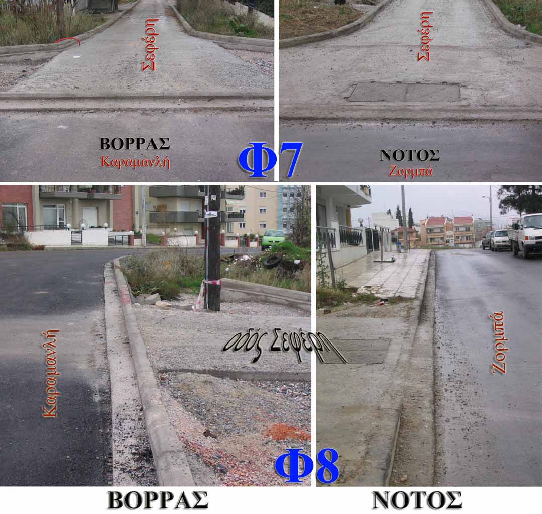 · Τα μηνύματα του Αυγούστου 2004 περιέγραφαν την αδυναμία πρόσβασης στην οδό Σεφέρη (όπου και η είσοδος του κλειστού, ιδιόκτητου χώρου στάθμευσης) από τη βόρεια πλευρά, εξ αιτίας του υπερυψωμένου κρασπέδου σε σχέση με την οδό Καραμανλή που ο Δήμος πεισματικά αρνήθηκε να ομαλοποιήσει, χαλώντας μάλιστα το αμμοχάλικο που πρόχειρα είχαν ρίξει οι εργάτες μετά από προσωπική μου υπόδειξη κατά το στάδιο εργασιών το 2003! (Φ7-Φ8). |